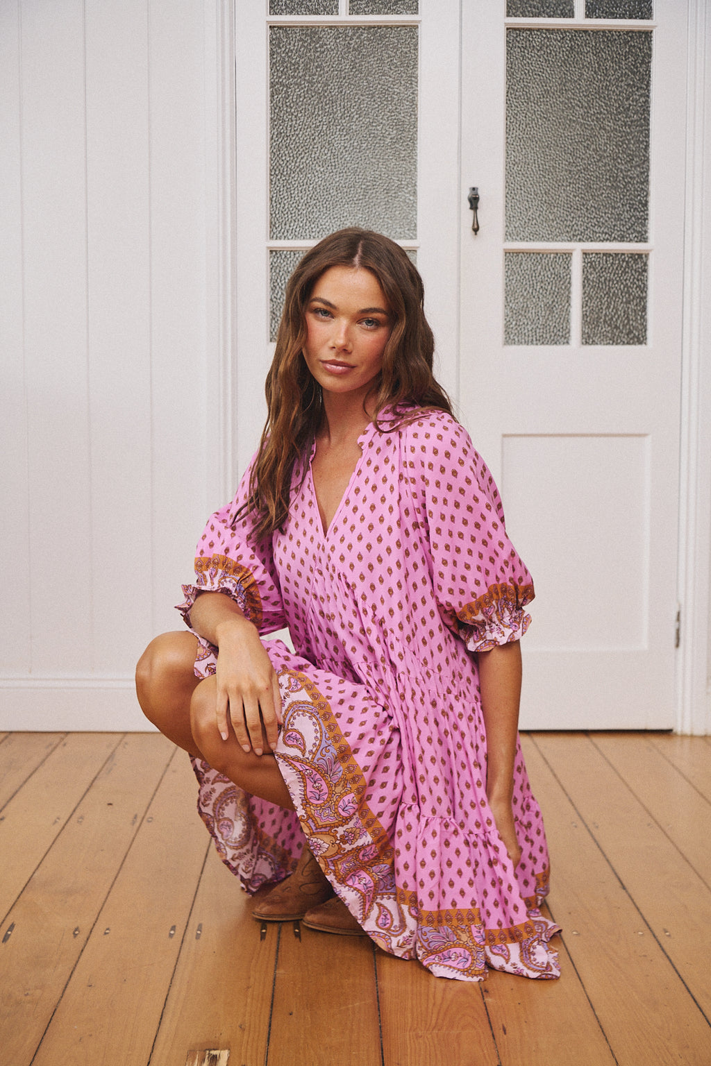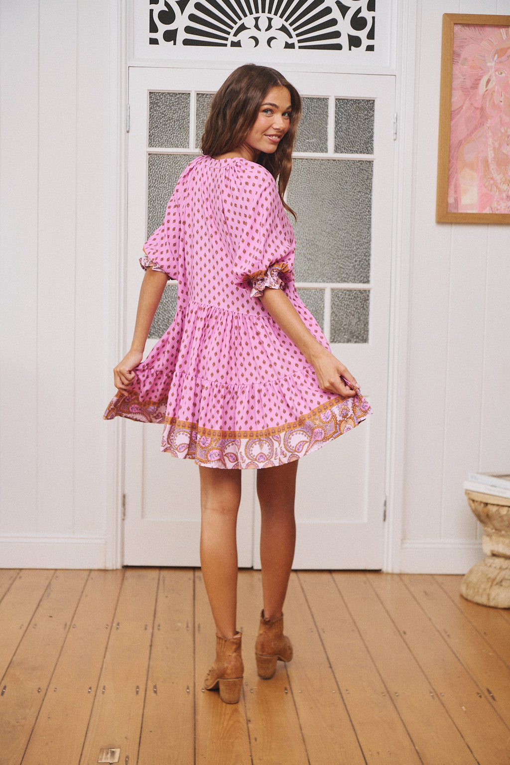 So pretty and feminine the Petal Mini is a gorgeous floaty dress with a relaxed fit bodice. The print border is placed into the bottom two skirt layers and the front bodice. Flirty fit sleeves complete the look of this sweet mini.