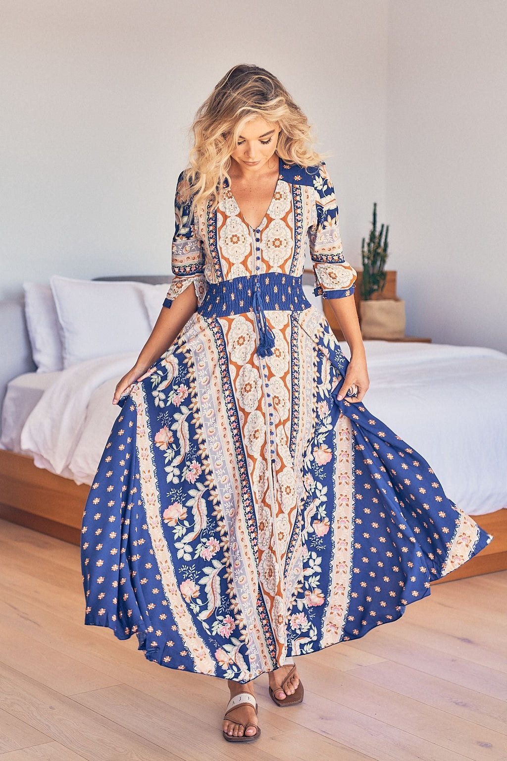 The Jaase all time classic style, The Indiana Maxi. This feminine style is the ultimate in romantic boho with this floaty full length full circle hem and button down front. You can't not feel like a princess when you are wearing your Indiana maxi. The shirred waist provides a stunning shape for all women.