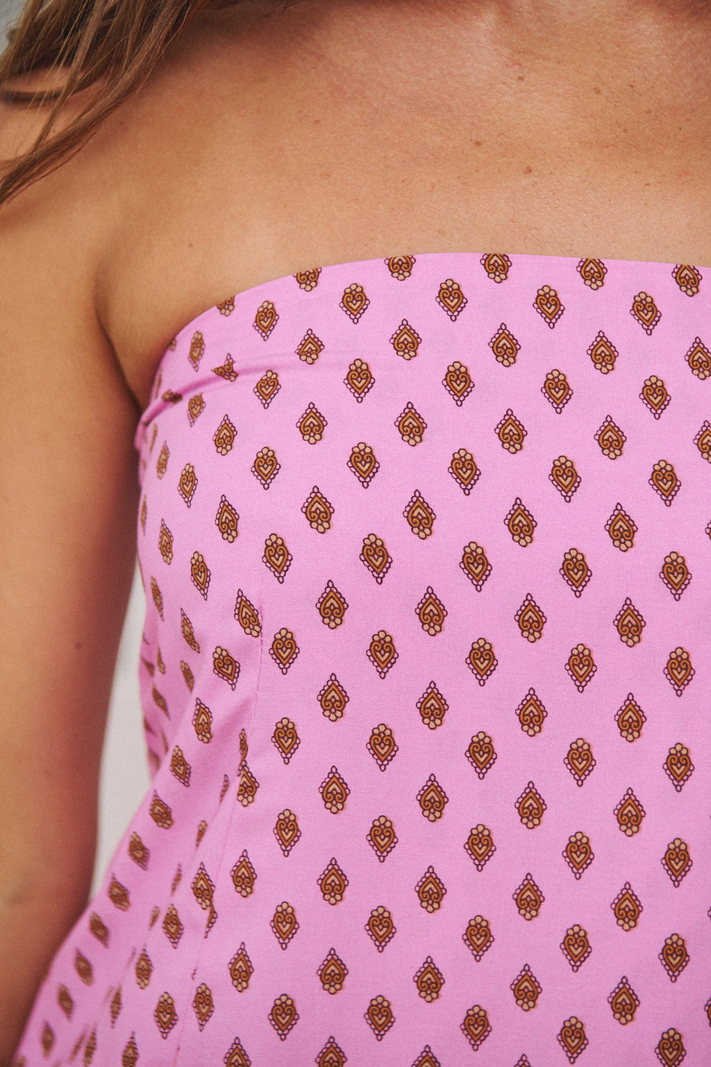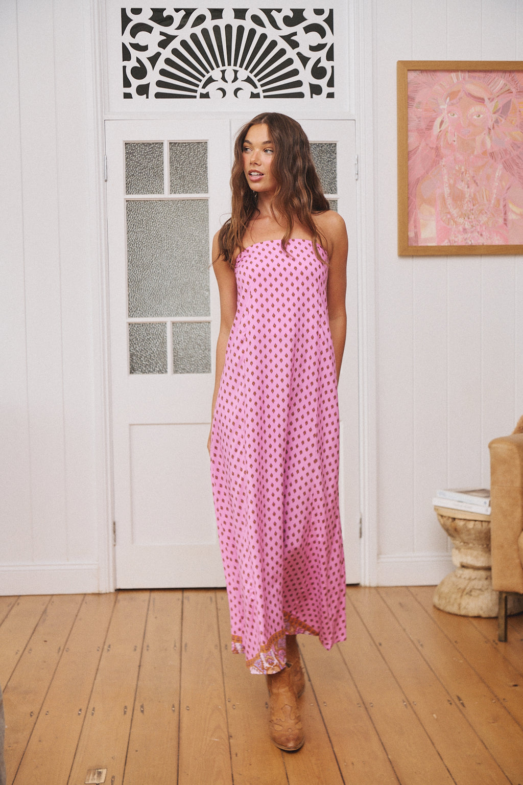 This strapless maxi dress is an effortless statement piece, designed with a relaxed, flowing silhouette that moves beautifully. Featuring a straight neckline and an eye-catching all-over print with a contrast border hem, it’s an easy throw-on style perfect for warm days and relaxed occasions.