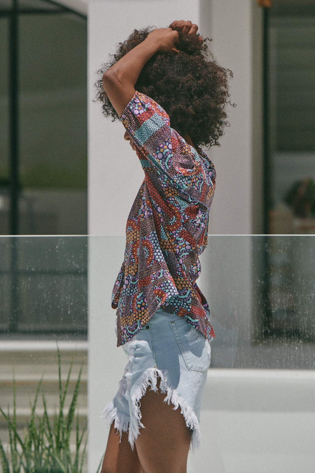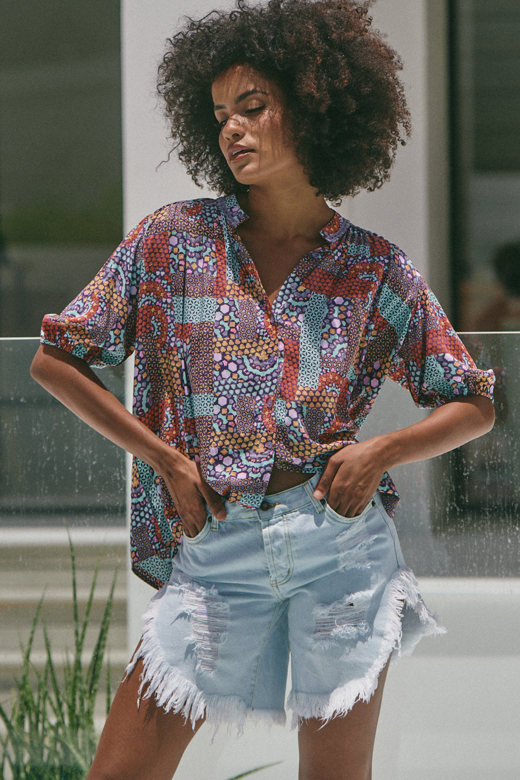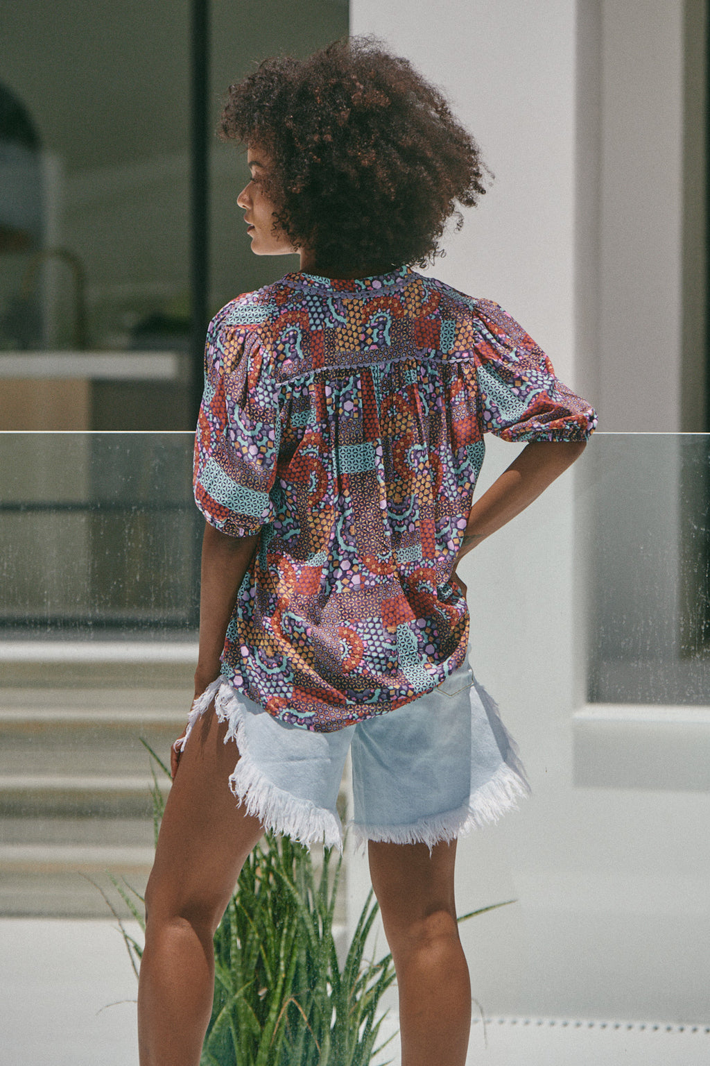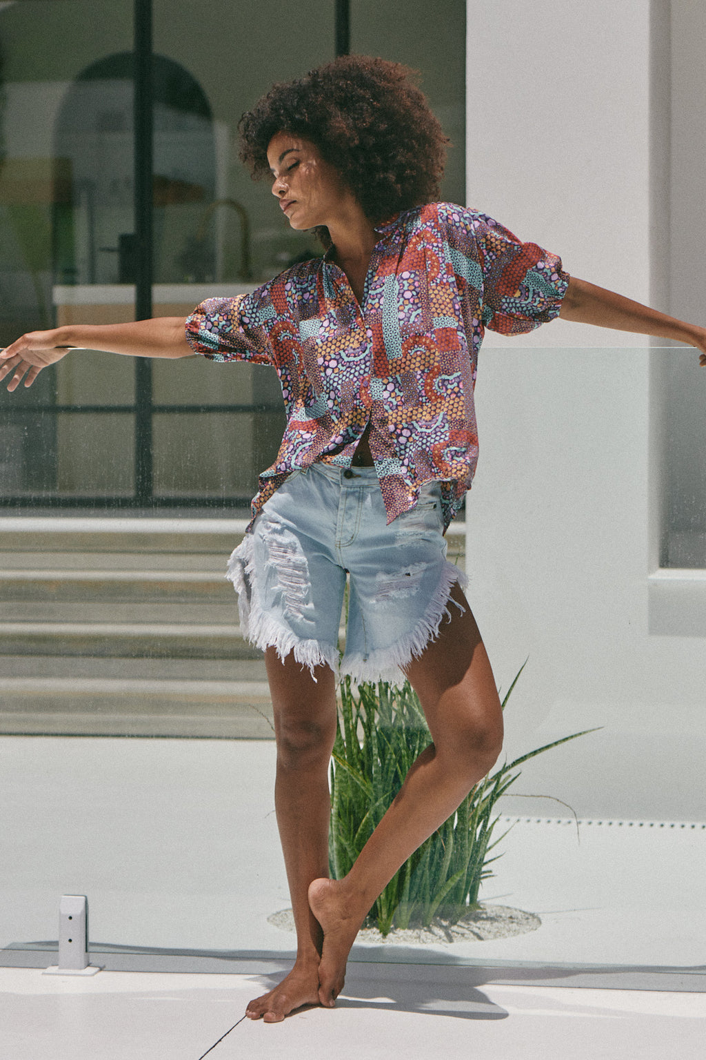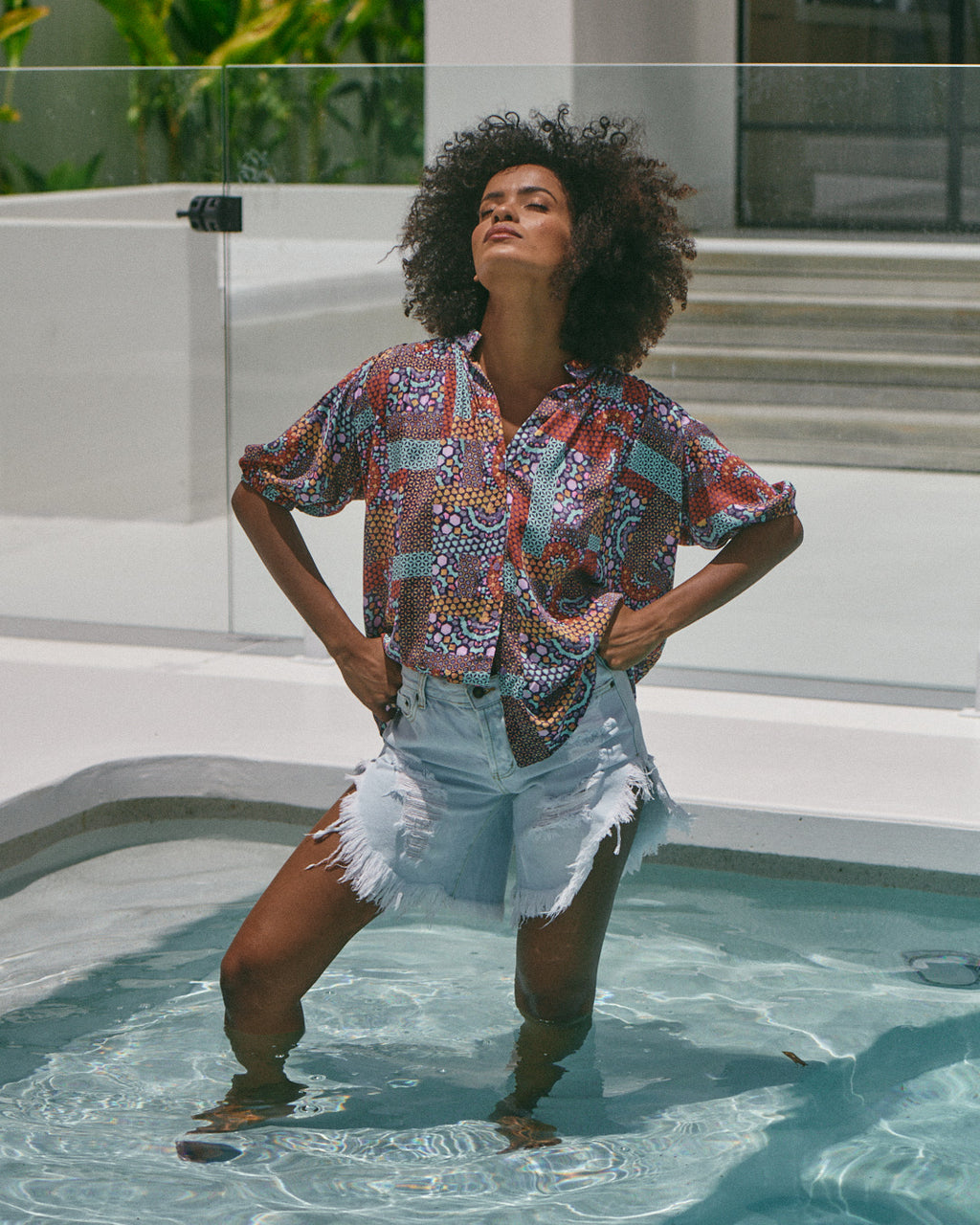 An effortless essential, this soft and drapey blouse is a must have as it can been worn so many ways. Crochet trimming and button through for added dimension.