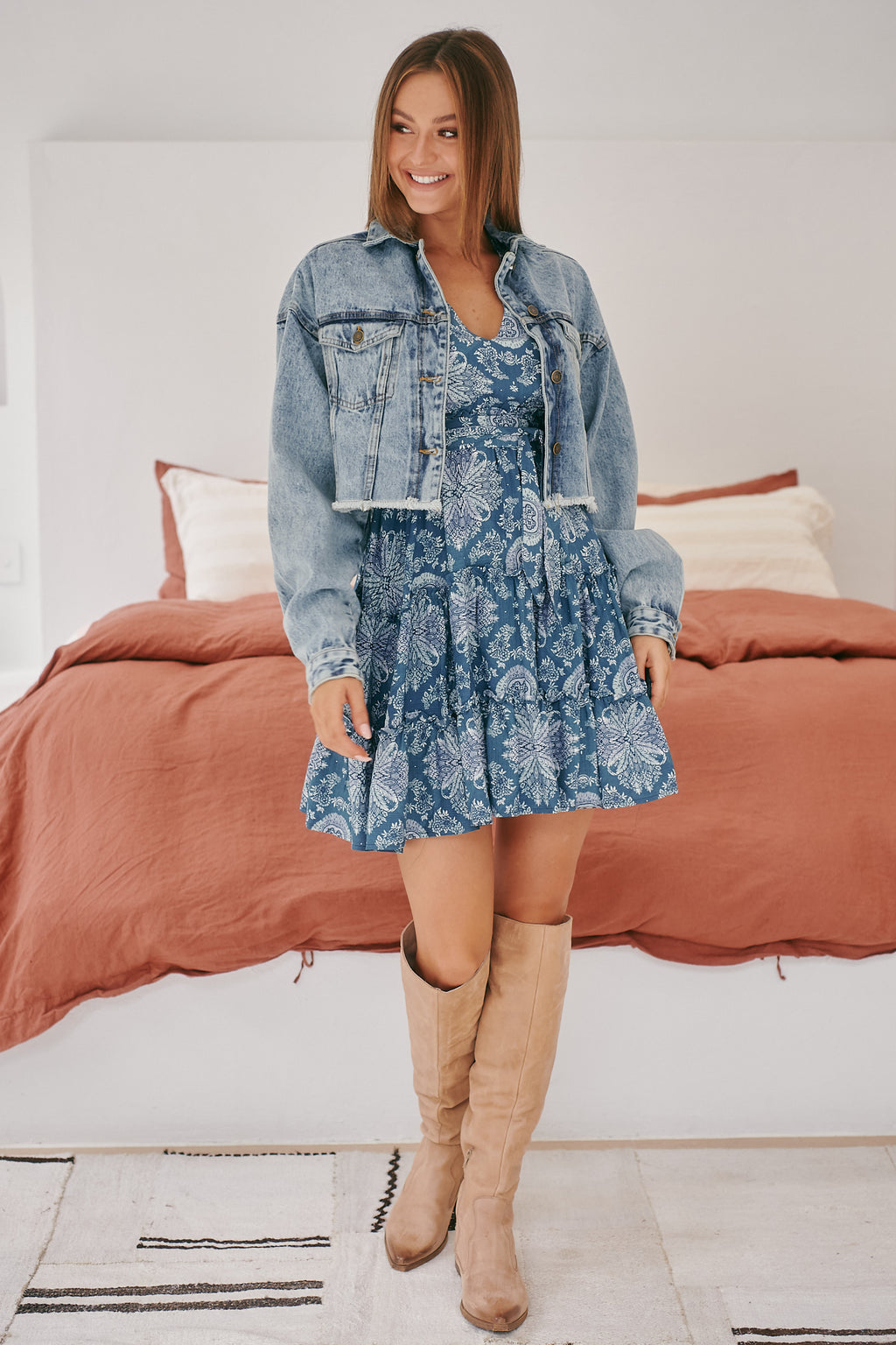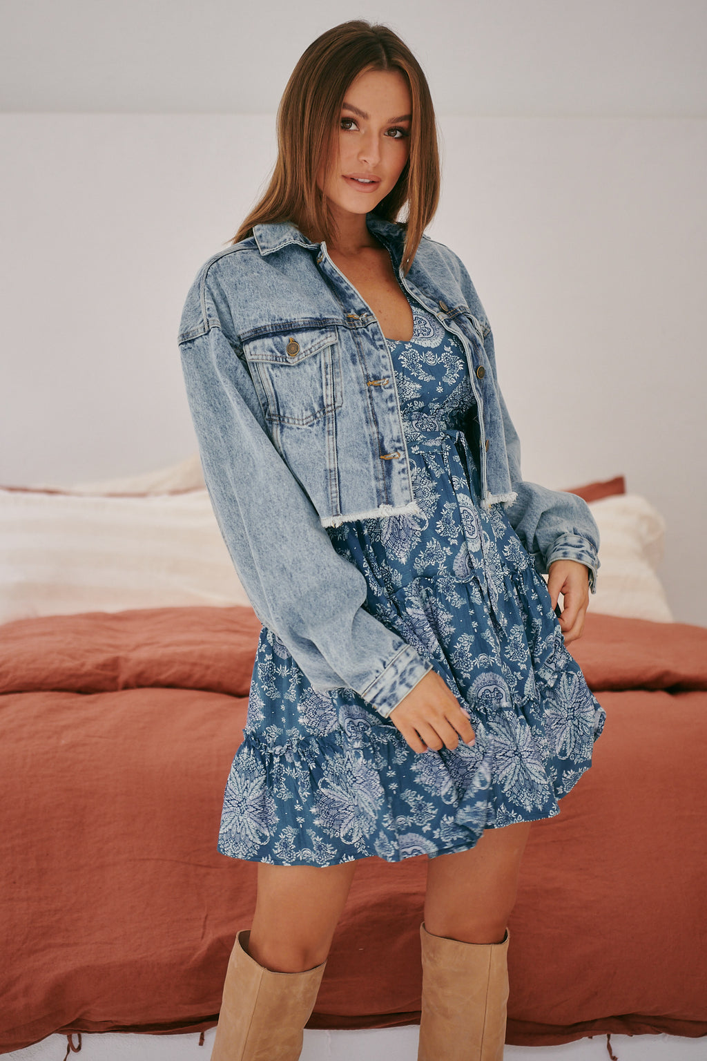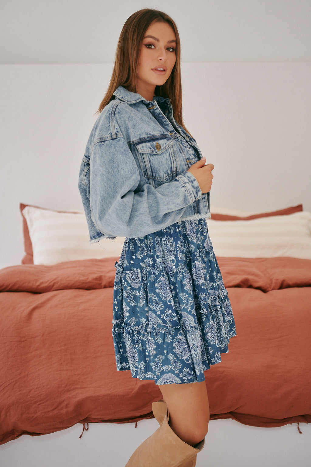 Flirty and floaty! The Daya mini is the perfect style to slip on and instantly feel pretty! You will be twirling all night long with this full skirt and butterfly sleeves. The V neckline and elastic waist adds shape in all the right places.