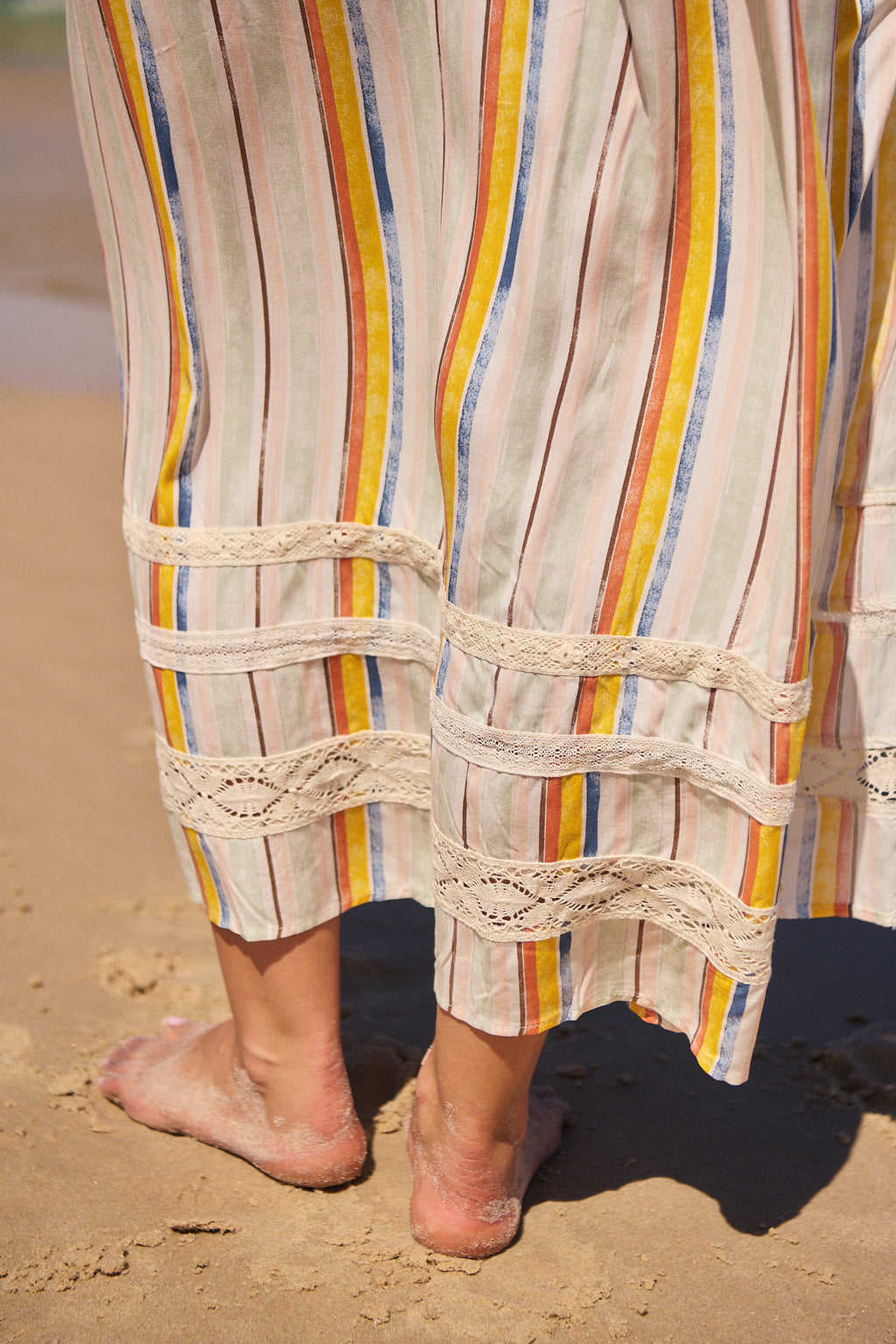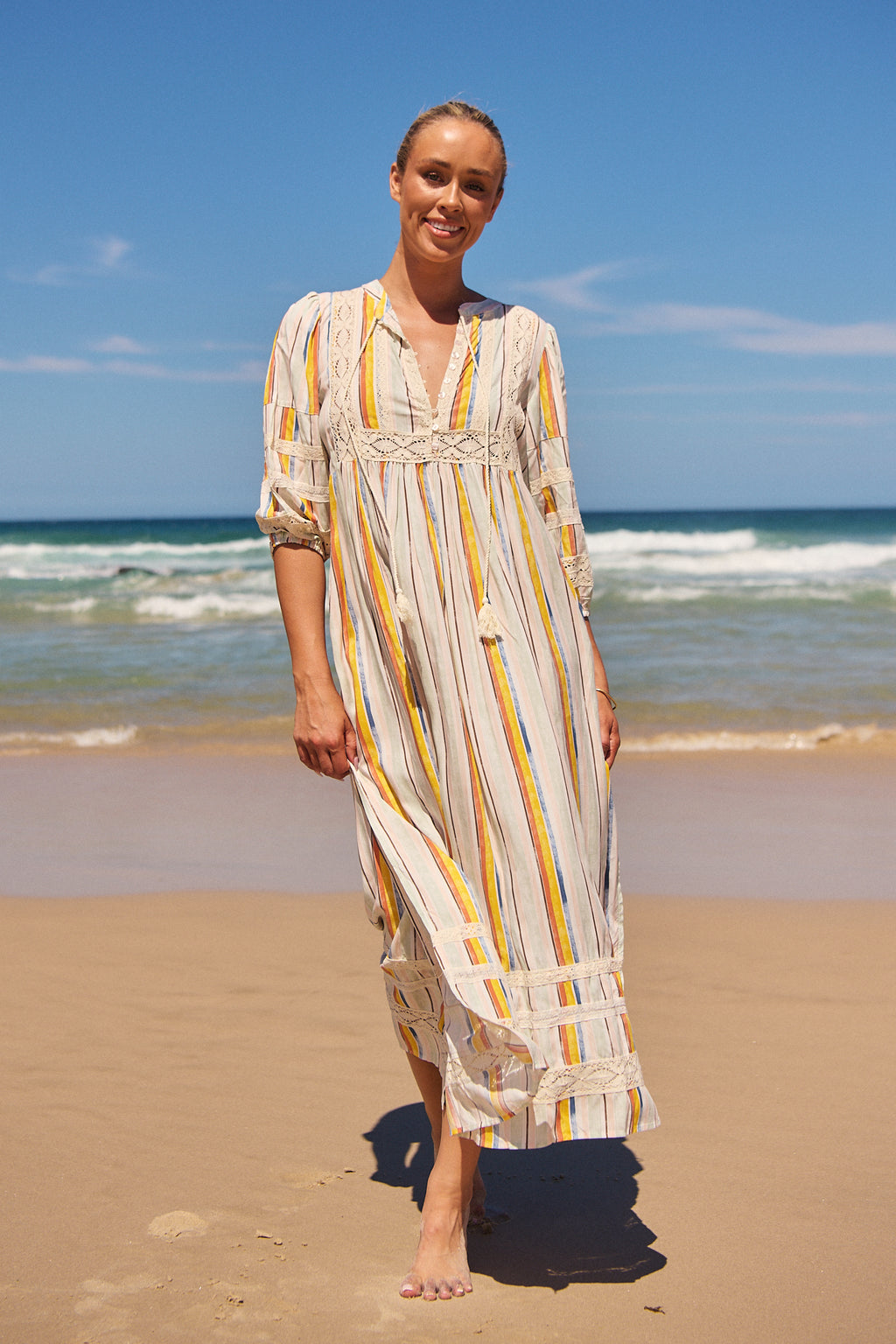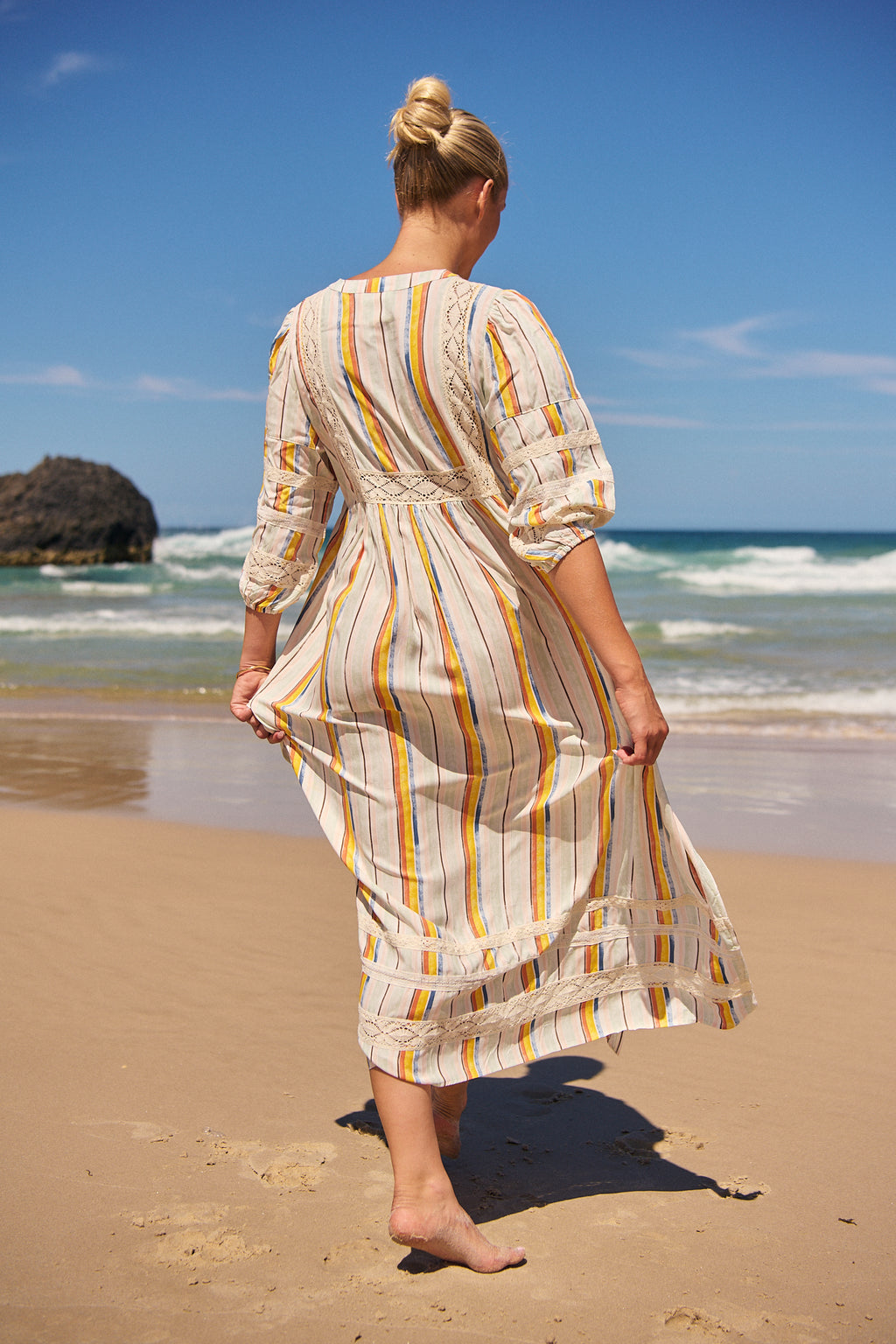 The Meadow Maxi is all about effortless charm and timeless style. Featuring a gorgeous border print, this beauty has a button-front bust with delicate lace detailing on the bodice and sleeves. The elegant mid-length sleeves with soft elastic cuffs add comfort and ease, while the floaty, full-length skirt falls gracefully to the ankle with subtle side splits for a breezy finish. A dress that moves with you, perfect for sunny days and relaxed evenings alike.