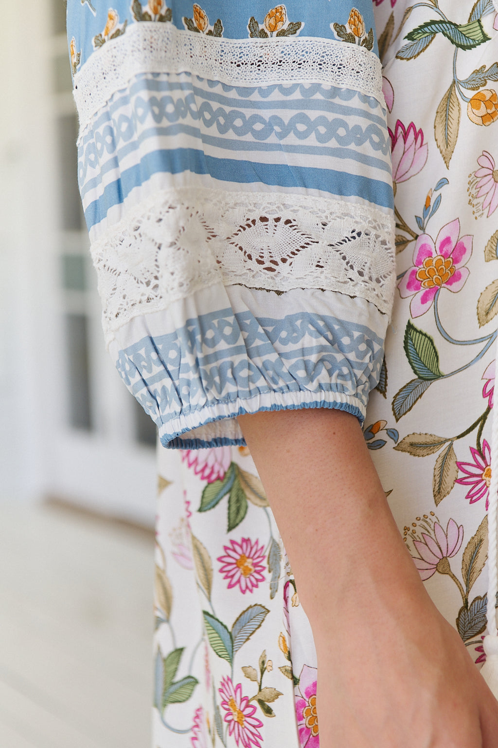 The Meadow Maxi is all about effortless charm and timeless style. Featuring a gorgeous print, this beauty has a button-front bust with delicate lace detailing on the bodice and sleeves. The elegant mid-length sleeves with soft elastic cuffs add comfort and ease, while the floaty, full-length skirt falls gracefully to the ankle with subtle side splits for a breezy finish. A dress that moves with you, perfect for sunny days and relaxed evenings alike.
